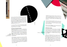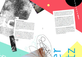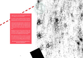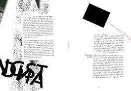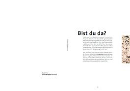 The white hardcover with its blind embossing is deceptive – beneath it hides visual chaos that mirrors our daily mental wandering between past ruminations and future worries. Structural elements dissolve page by page, with text blocks serving as anchors.
